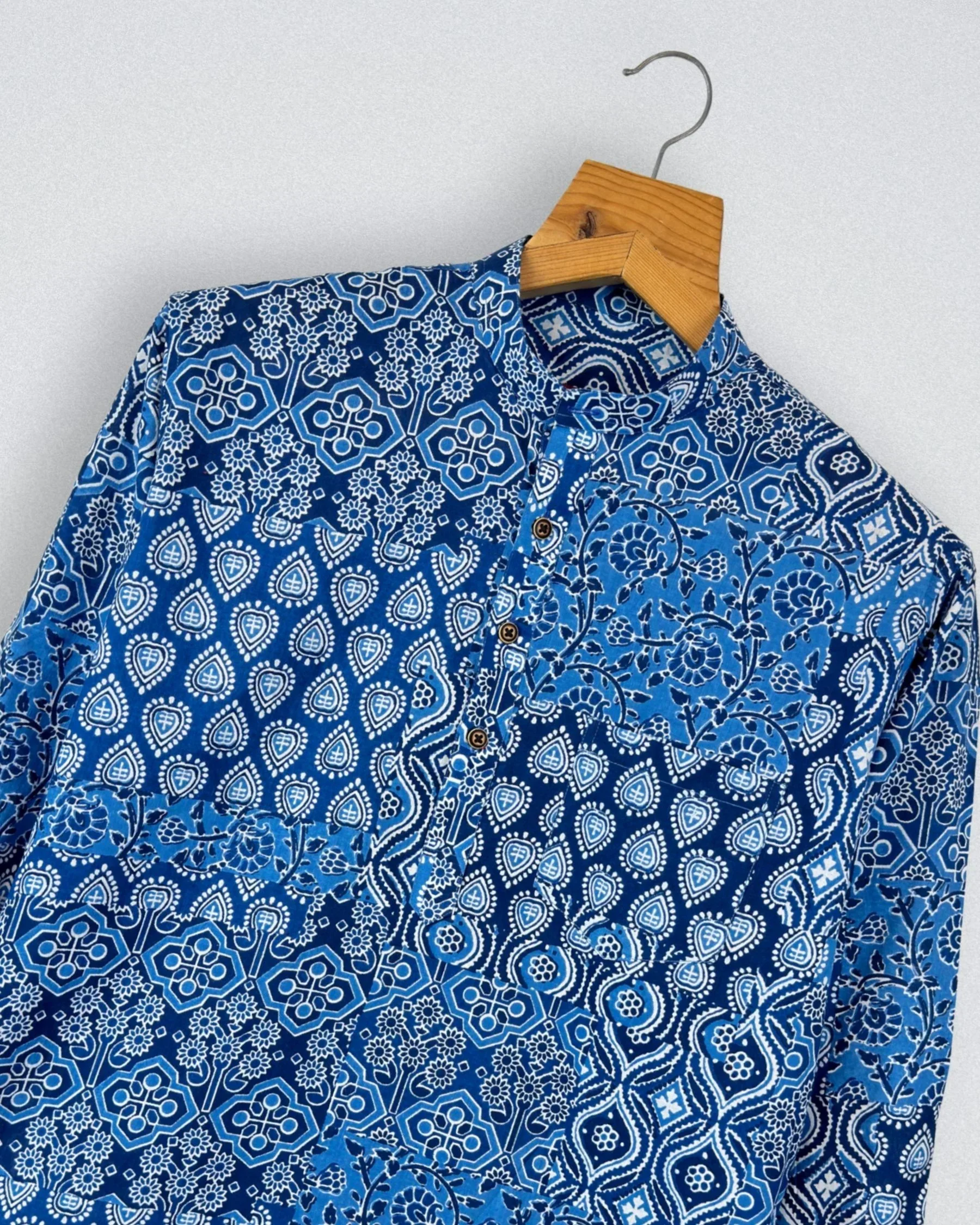 Step into style with Ocean Wave by Jaipuri Crown – a stunning Short Kurta featuring an intricate blue floral print against a rich indigo backdrop. Made from 100% Sanganeri cotton, this Kurta promises a soft and breathable feel, perfect for casual gatherings, festive occasions, or laid-back weekends.
