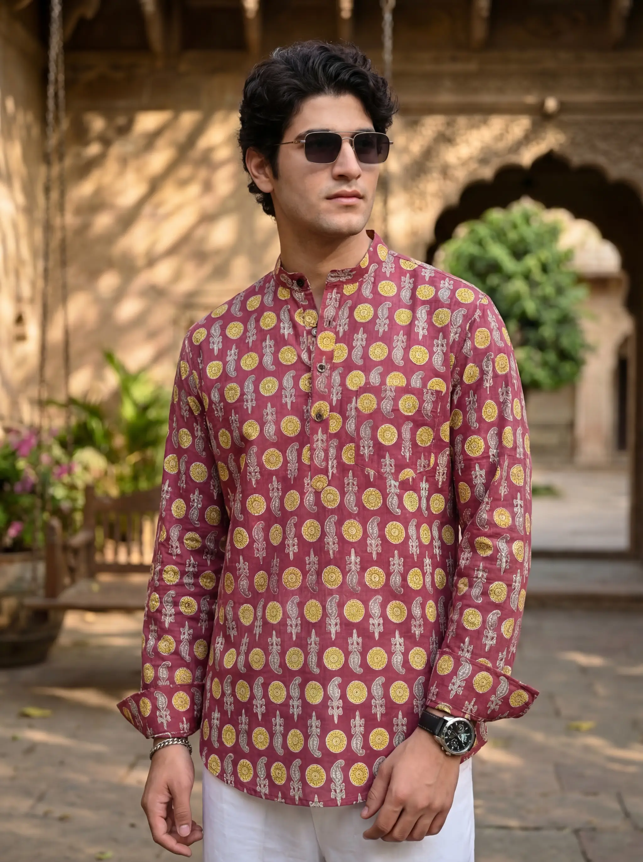 Step into a world of vibrant colors with Floral Harmony by Jaipuri Crown – a stunning Short Kurta featuring an eye-catching floral print in pink and yellow on a rich maroon background. Made from 100% Sanganeri cotton, this Kurta ensures utmost comfort and breathability, making it an ideal choice for festive occasions, brunches, or casual outings.