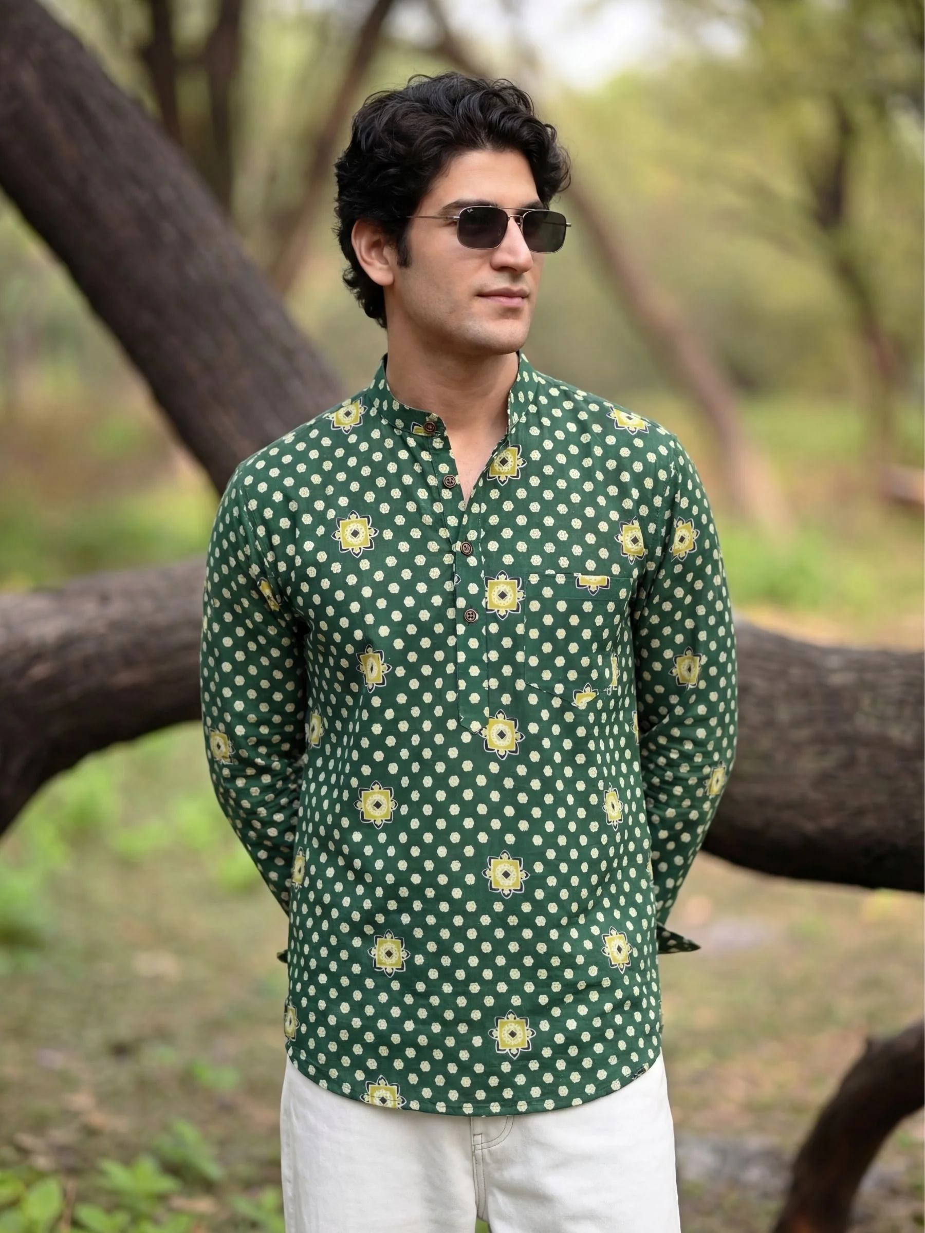 Step into style with Floral Fusion by Jaipuri Crown – a trendy Short Kurta featuring a stunning floral print in green and cream. Made from 100% Sanganeri cotton, this Kurta ensures a soft and breathable fit, making it an ideal choice for casual gatherings, festive occasions, or everyday wear.