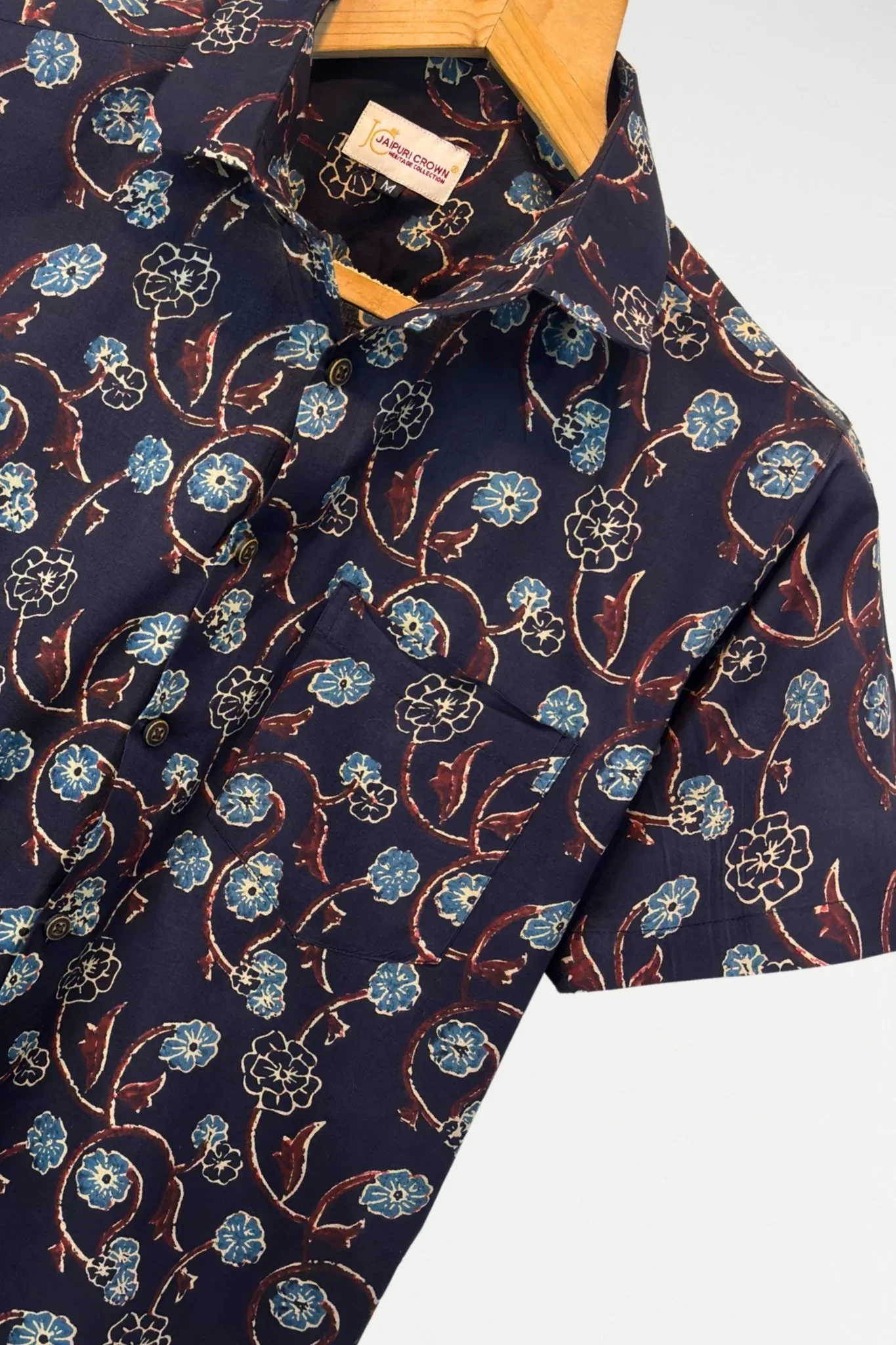 Style Note: Our Jaipuri Printed Shirt, featuring exquisite Sanganeri patterns, showcases the artistry of traditional Sanganeri shirts. With half sleeves and a regular fit, it offers superb comfort and a flawless finish. This piece seamlessly blends traditional Jaipuri craftsmanship with modern style, making it a must-have for your collection.