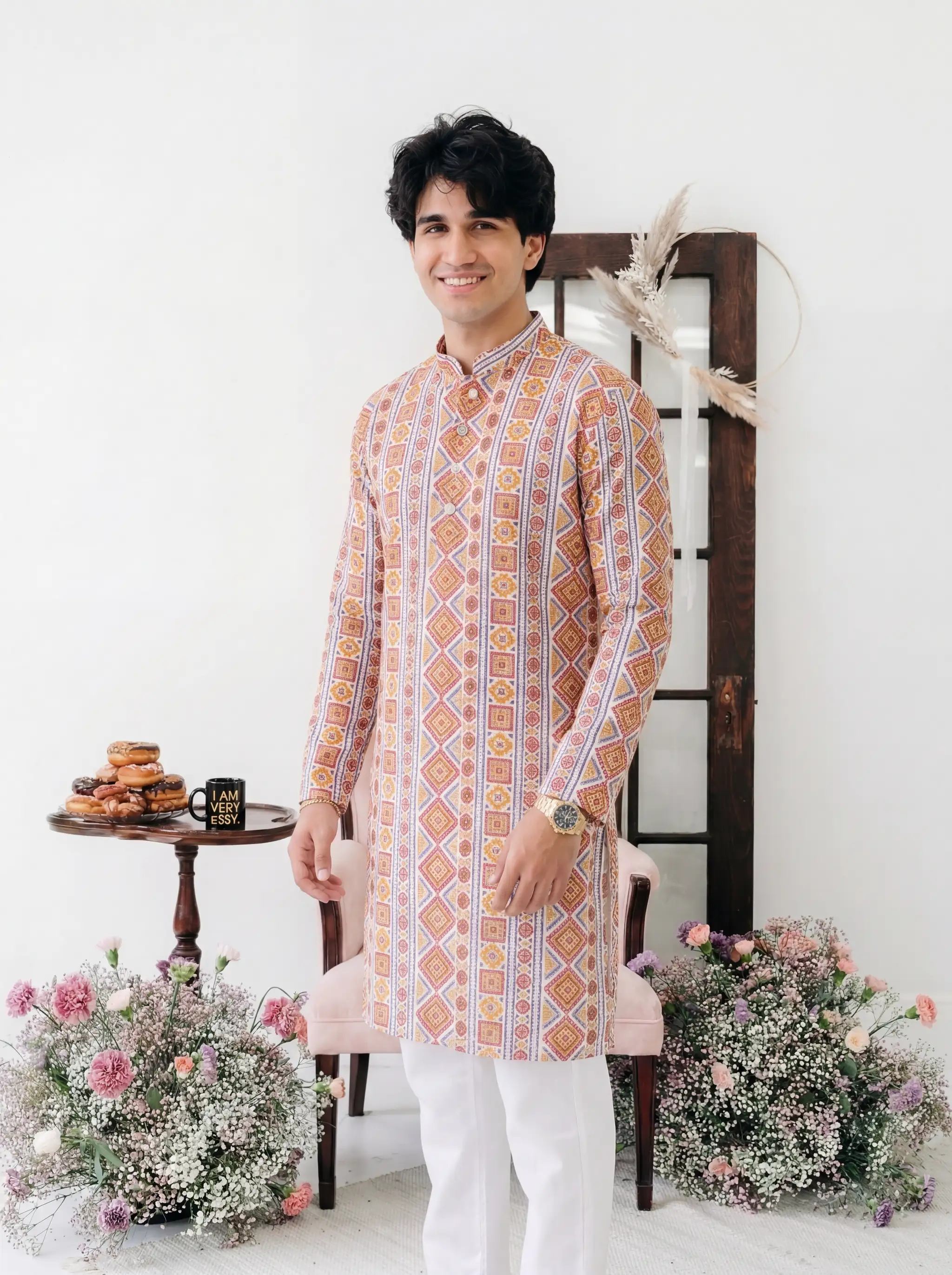 🌿 Crafted from high-quality soft Lucknowi Kurta for a luxurious and comfortable experience.